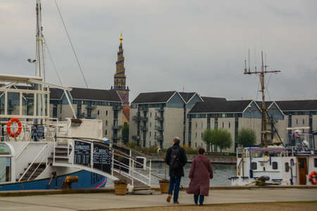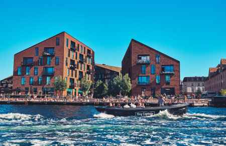Copenhagen, Denmark - September 22, 2019 Beautiful new Haven water canal in Copenhagen,tour by boat on the canals of Copenhagen