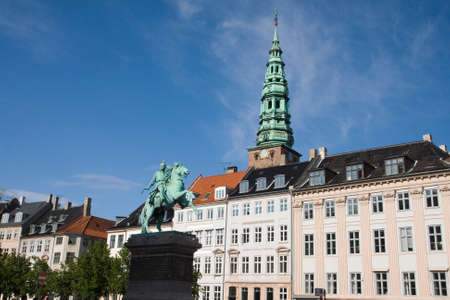 COPENHAGEN, DENMARK: Beautiful View of the landmark green spire of the former St. Nicholas Church, now Nikolaj Contemporary Art Center in Copenhagen. Nikolaj Kunsthal