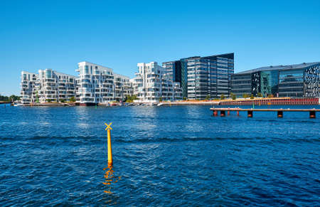 Modern buildings on the bank of the canal in Copenhagen, Denmark.