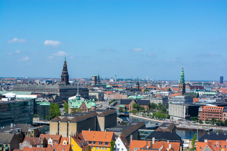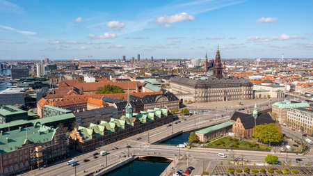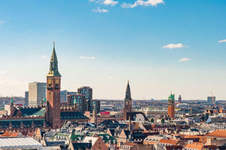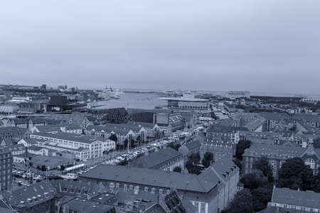 Aerial view of Copenhagen from the top of tower of Copenhagen City Hall. Copenhagen, Denmark.