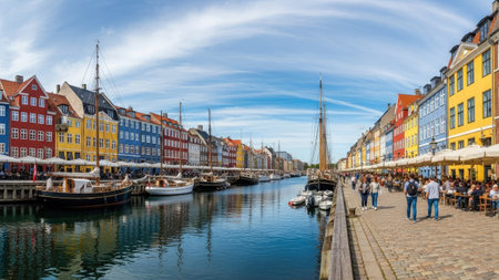 Panoramic view of Nyhavn in Copenhagen, Denmark