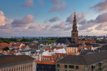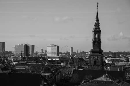 Cityscape of the city from the observation deck at the Round tower (Rundetaarn) in Copenhagen, Denmark