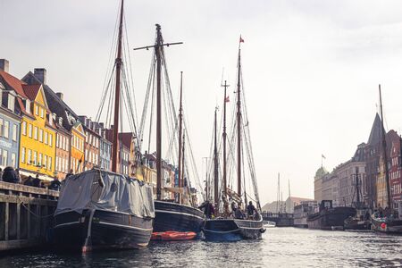 Traditional colorful facades in Copenhagen city center. Nyhavn area. Denmark