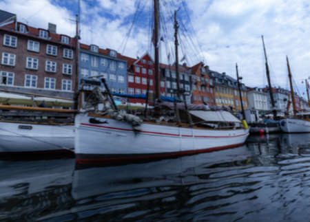 Defocused Colorful Nyhavn Townhouses With White Boats In Foreground