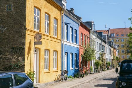 Copenhagen, Denmark- May 6, 2018: Copenghagen street with trditional colorful houses