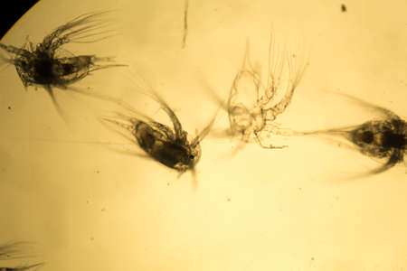Small crabs as sea plankton like krill under the microscope