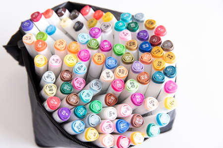 Felt pen or colorful markers with color numbers close up