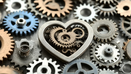 Interlocking gears forming a heart shape, showcasing the beauty of precision engineering.