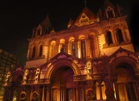 The Old South Church at night, in Back Bay, Boston, Massachusetts.