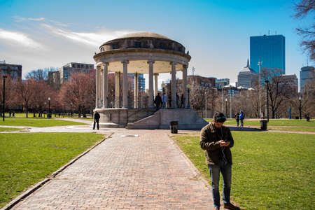 BOSTON, MA - MARCH 19, 2016: People enjoy the Boston Public Garden, Boston MA, USA