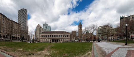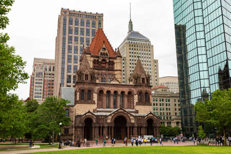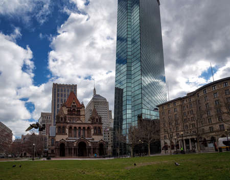 BOSTON, USA - MARCH 29, 2020: Trinity Church at Copley Square in Boston, Massachusetts, USA