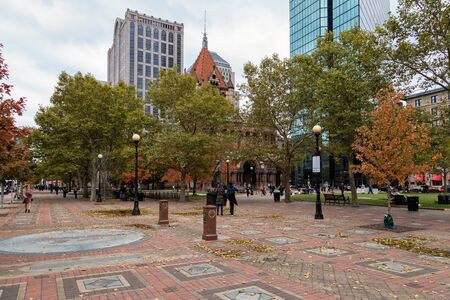 Copley Square, Boston, MA - October 18, 2015: Copley Square, named for painter John Singleton Copley, is a public square in Boston's Back Bay neighborhood.
