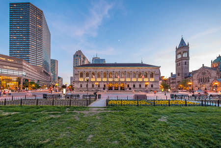 Buildings at Copley Square at night, in Back Bay, Boston, Massachusetts.