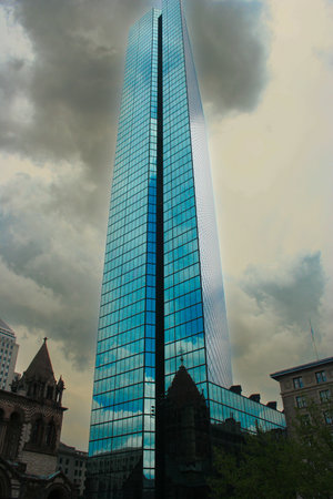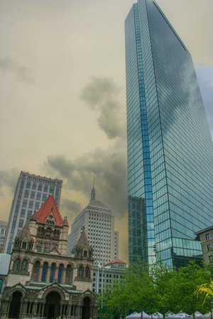 The John Hancock Building and Trinity Church at Copley Square in Boston, Massachusetts.