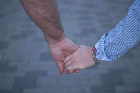 Close-up of a loving couple holding hands while walking. Love and emotions concept.
