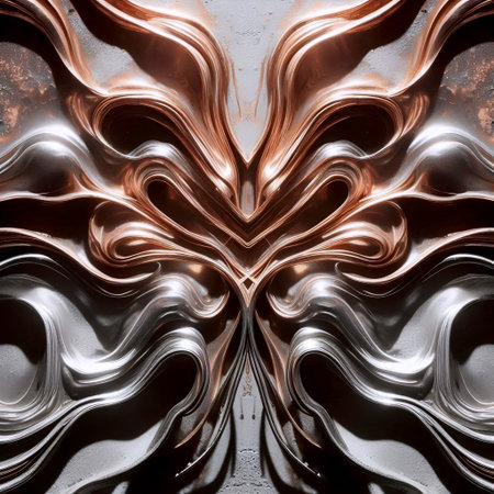Elegant bronze foil texture with a glossy, pearlescent finish. Wrinkled, creased drapery effect creating a chic, modern design. Shiny, metallic surface with a beautiful glow and shimmer, perfect for