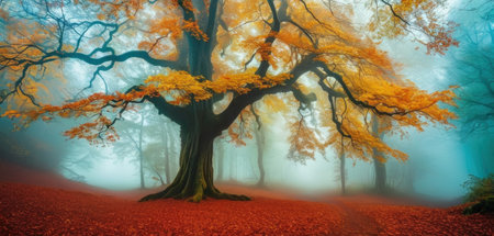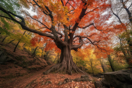 majestic tree with colorful leaves in autumn forest, created with generative ai