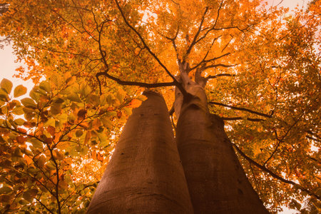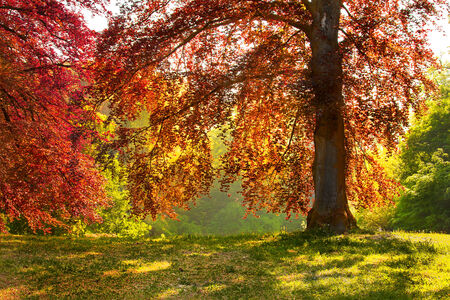 Beech tree dyed in autumn leaves