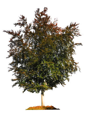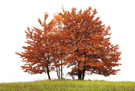 autumnal trees on meadow isolated on white background