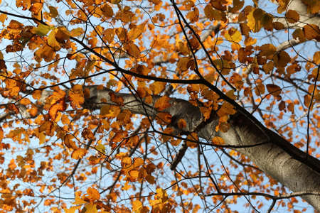 Autumn view of colourful leaves and tree branches in forest, South Korea
