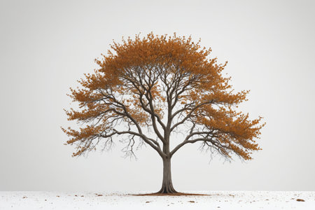 Stunning golden foliage on a tree creates a vibrant contrast against the serene winter landscape. Ai generated image