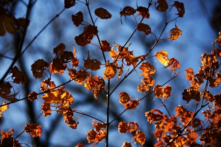 brown tree leaves in autumn season, autumn colors