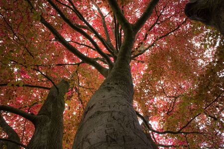 Up close. Colorful autumn trees Bright red autumn
