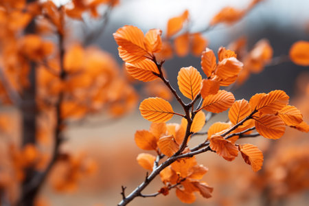 orange foliage on the branch in autumn. beautiful nature background