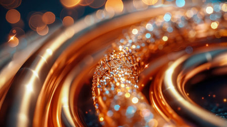 A detailed shot highlighting the intricate grooves and rich, glowing hues of a spiraled copper conductor, evoking warmth and craftsmanship.