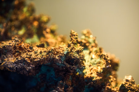 This captivating close-up image showcases the intricate details of natural copper crystals. The shiny, metallic texture highlights the unique formations, making it an ideal choice for environmental or geological themes.