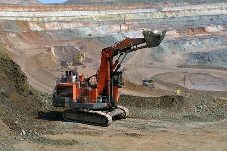 excavator in an open mine plant