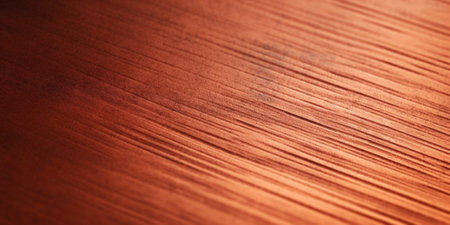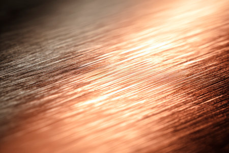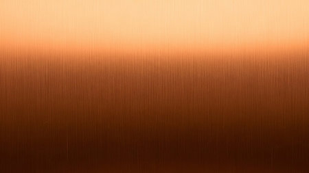 A close-up view of a brushed copper metal surface with a distinct vertical grain and a warm gradient from light orange to dark brown.