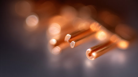 A stunning close-up image showcasing shiny metallic rods reflecting warm hues, perfect for adding an industrial or abstract touch to design and creative projects.