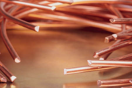 Secondary Raw Material copper Scrap, selective focus. Background.