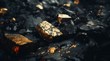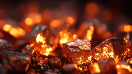 This close-up image features glowing amber rocks that radiate warmth and light against a dark background, creating a striking visual effect ideal for artistic projects.