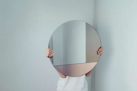 Abstract shapes with round mirrors in neutral colors