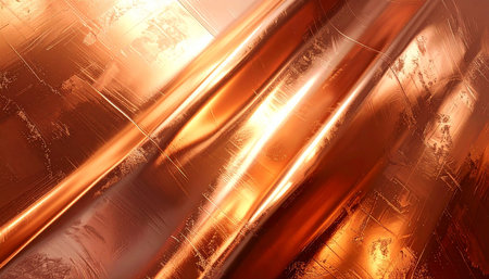This abstract image captures a metallic texture, featuring a shimmering copper surface with reflective waves, evoking warmth and elegance for creative projects.