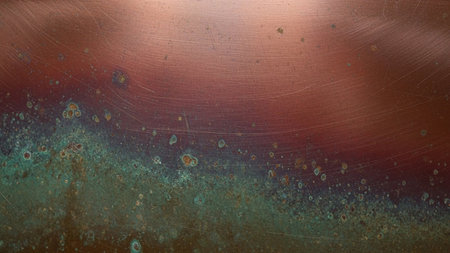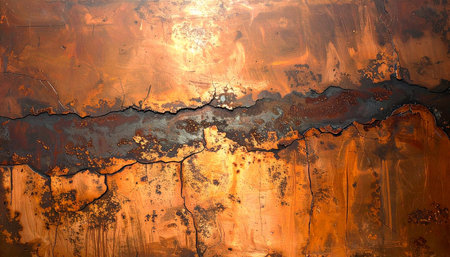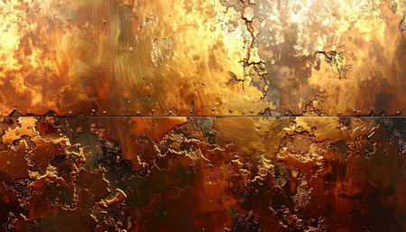 Worn copper background with a vintage patina, rich bronze tones mixed with dark gold highlights, ideal for industrial or historical designs.
