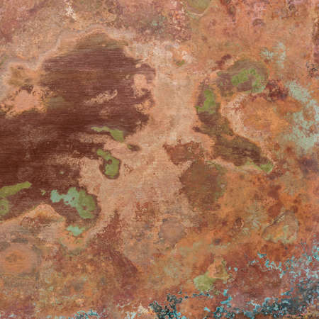 A richly textured copper surface showcases the beautiful patina of age and corrosion.
