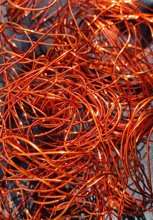 Copper wire, close-up. Copper wire background. Copper wire texture