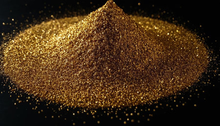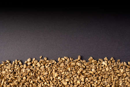 Pile of small gold particles on dark gray background