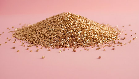 a macro photo of bronze glitter on a similar hued ground, created with generative ai