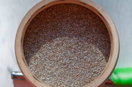 Texture in the shadows and the sun. Rye bran, partially illuminated by the sun