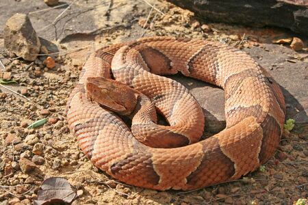 Copperhead (Agkistrodon contortrix) snake at Monte Sano State Park in Alabama