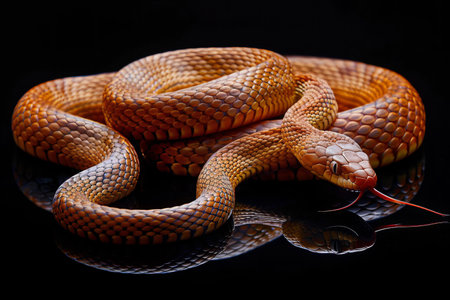 Photo image of an adult brown snake on black, high quality, high resolution