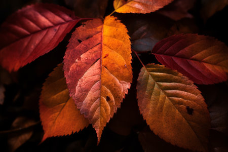Vibrant autumn leaves tapestry with diverse colors and textures. Perfect for seasonal backgrounds and close-up botanical patterns in october and november