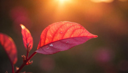 Crimson leaves glowing in the sunlight, autumnal warm tones