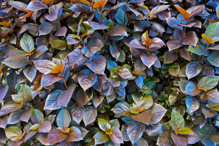 Colorful leaves background. Purple and blue color leaves pattern. Nature background.