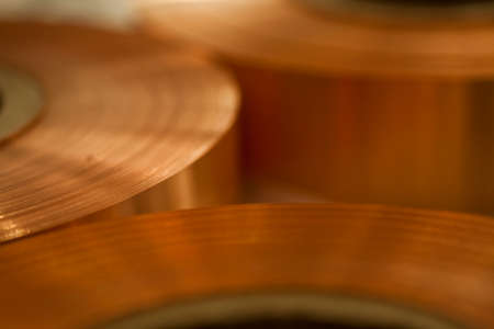 Shiny roll of copper wire close-up