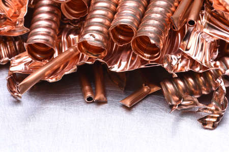 Secondary Raw Material copper Scrap, selective focus. Background.